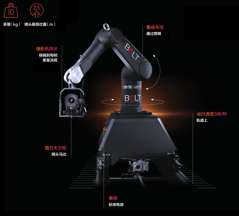 重量仅110公斤,比Bolt轻一半。便携运动控制设备,准备和安装时间不到1小时,外景拍摄的首选。