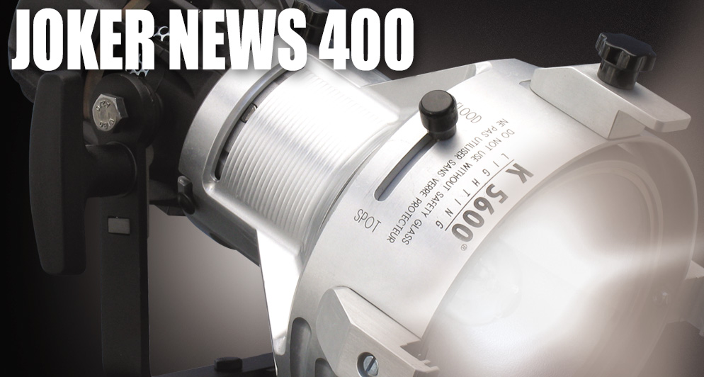 Joker News(杰克·新闻) 400系统专门为快节奏、需要快速安装的新闻领域而设计。速度极快的复击式灯启动器(re-strike lamp starter)确保灯即刻安静地点亮与再次点亮。这款新颖的灯一直沿袭着Joker-bug(杰克·伯格)系统的卓越质量,有两种款型:全方位灯和定向聚光的敞口灯。查看更多>>